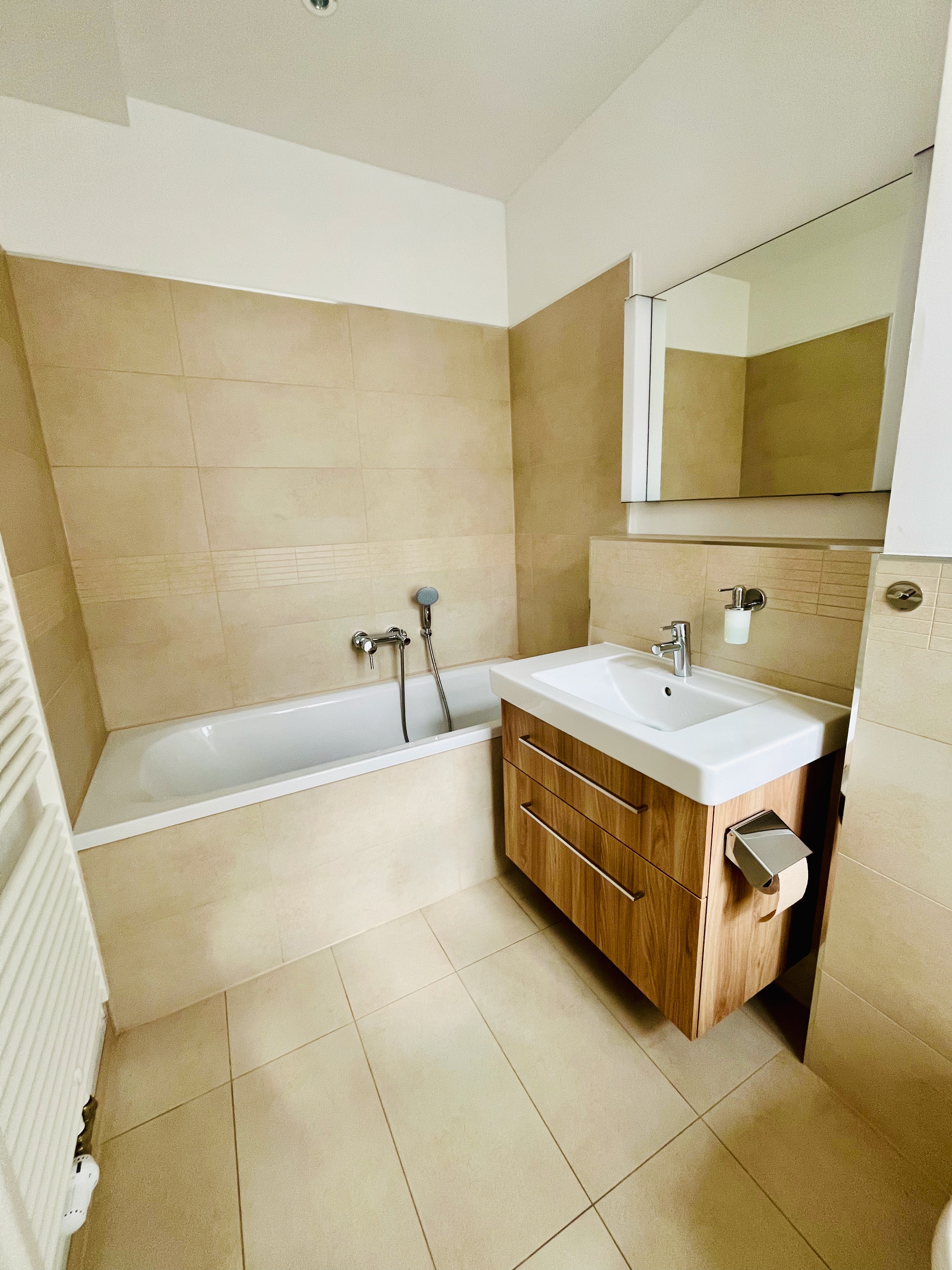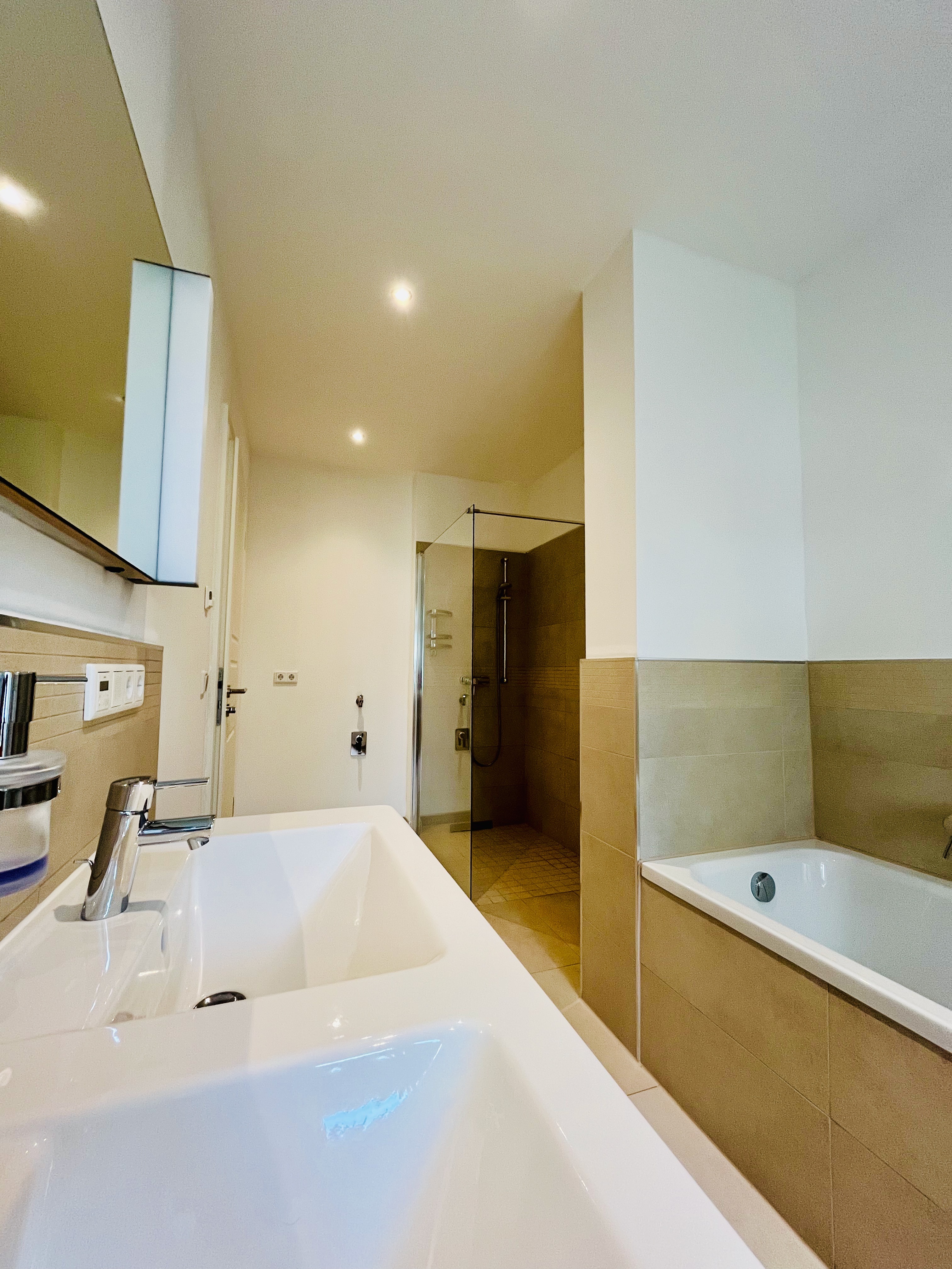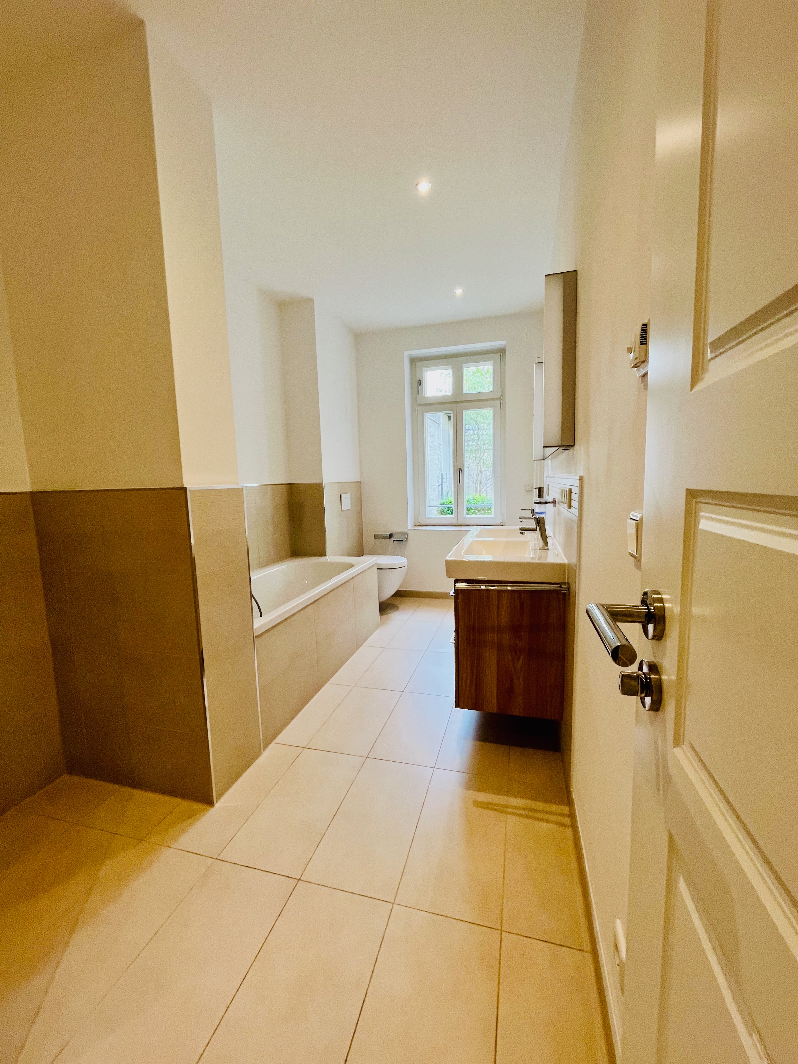 – Hauptbadezimmer mit Badewanne, Dusche, Waschmaschinenstellplatz, Fenster
