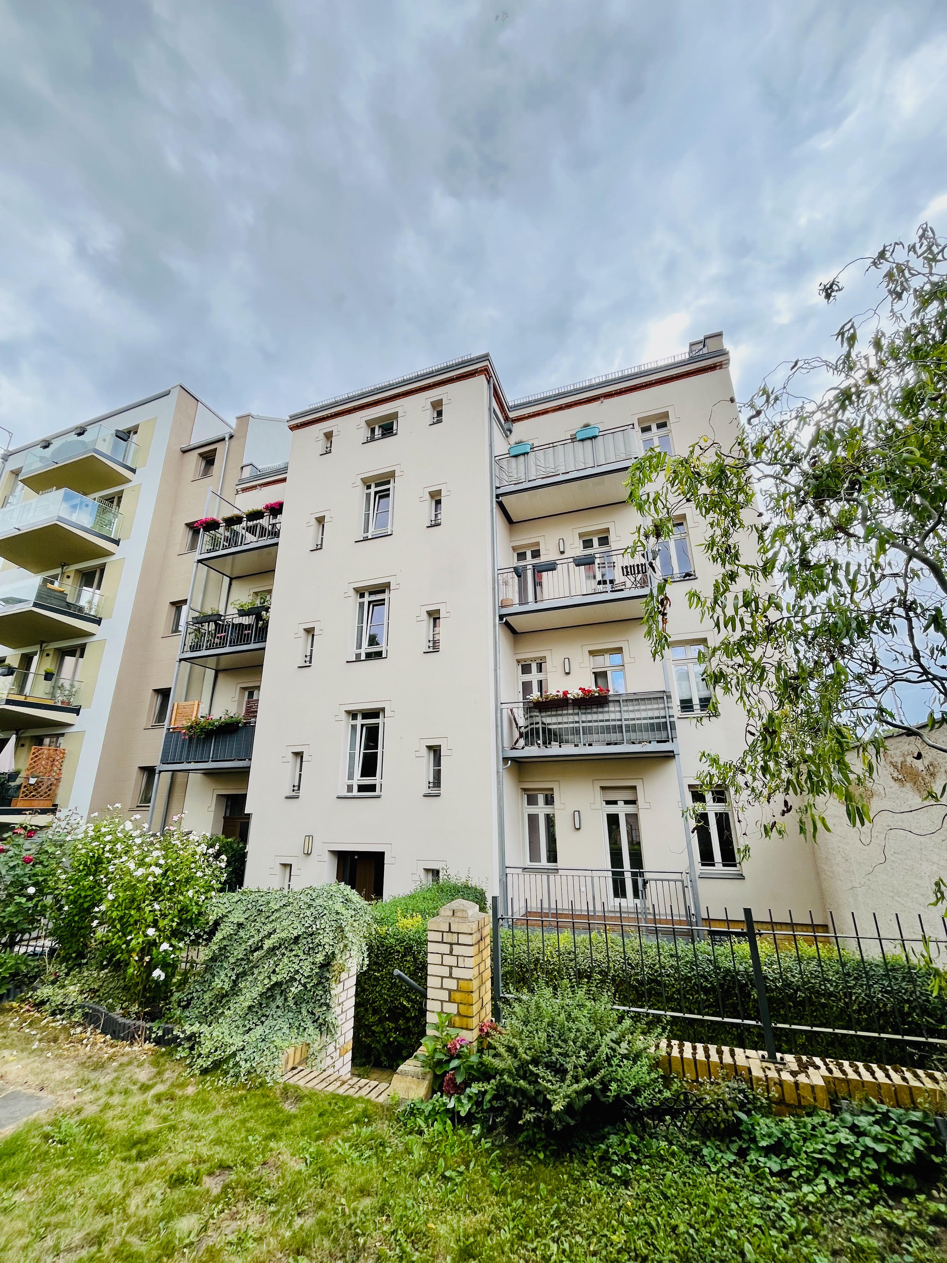 hochwertig saniert und erstrahlt seitdem wieder in neuem Glanz. Wie bei allen denkmalgeschützten Immobilien in Leipzig wurde bei der Sanierung Wert auf detailgetreue Wiederherstellung und Aufbereitung einzelner Gestaltungselemente wie Fassade, historische Malereien im Treppenhaus und Stuckelemente in Räumen und Fluren gelegt. Im Rahmen der Sanierung wurde zudem das Dachgeschoss voll ausgebaut.