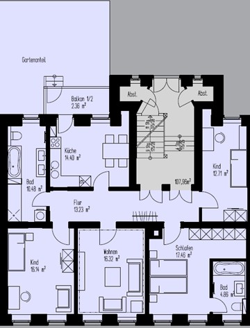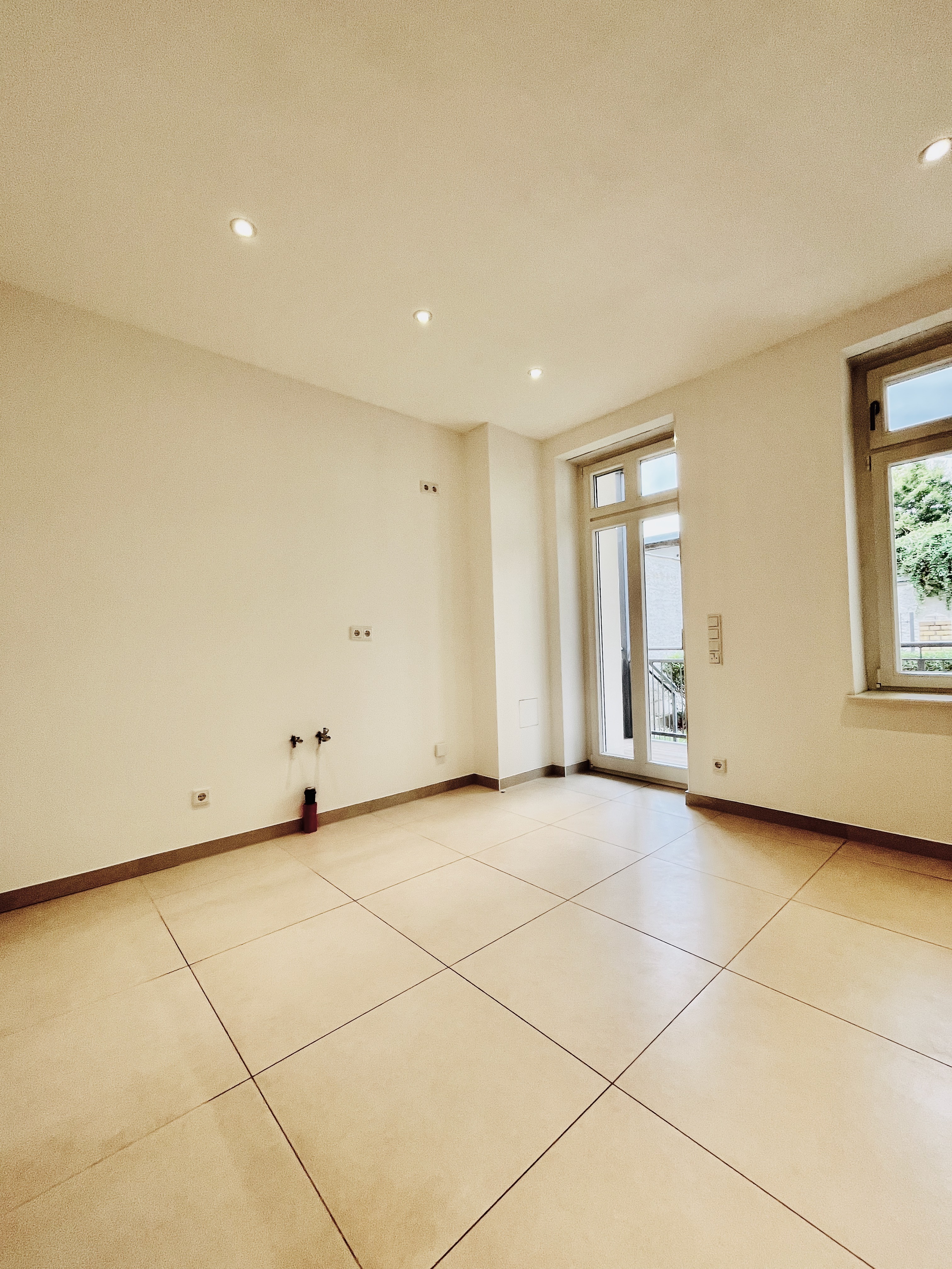 – geräumige Wohnküche (14,40 m²) mit Zugang auf den Balkon und in den Garten