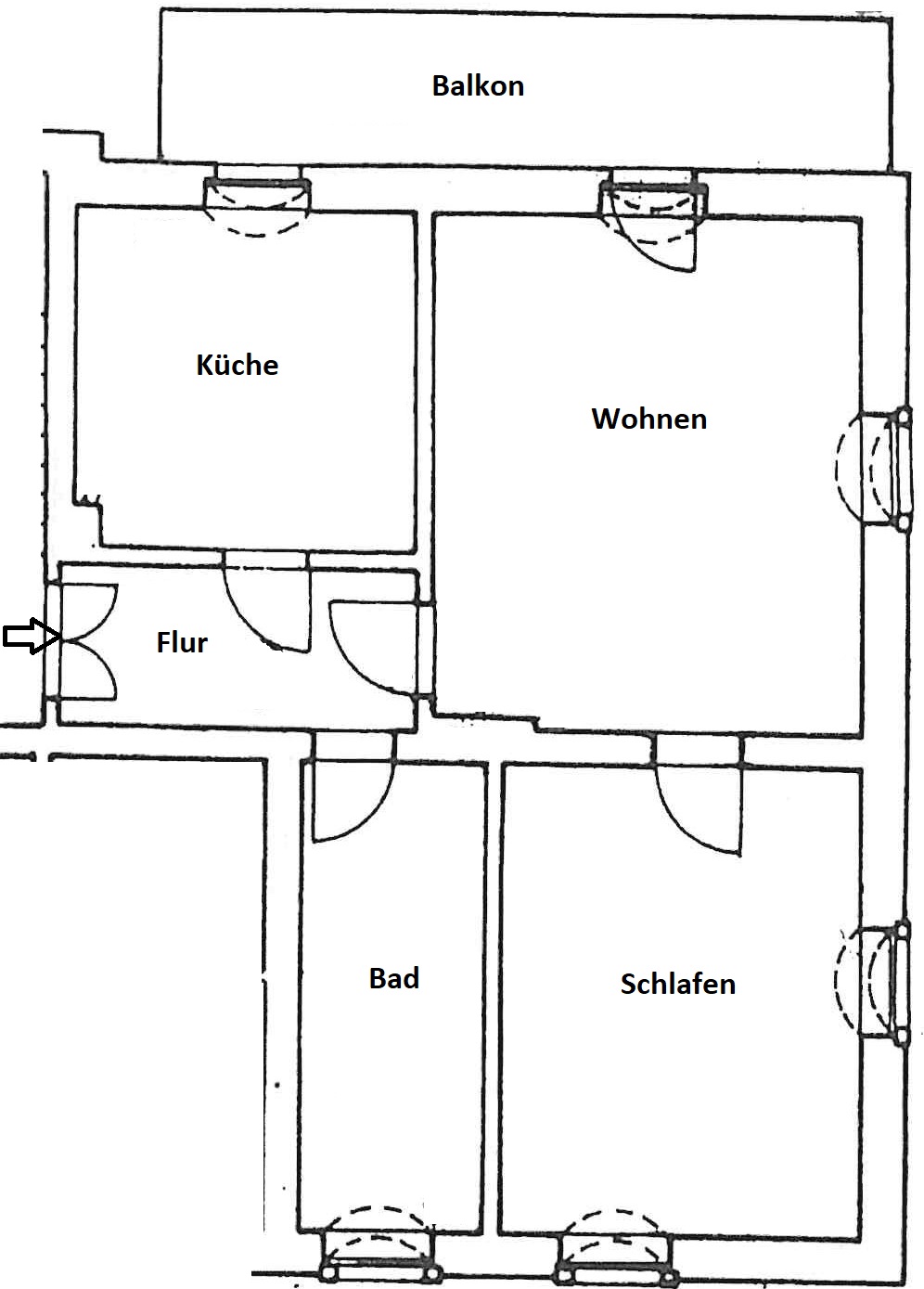 Die helle 2-Zimmer-Wohnung befindet sich im 2. Obergeschoss des Mehrfamilienhauses. Sie ist klassisch geschnitten. Sie erreichen vom Flur aus das großzügige Wohnzimmer mit Zugang zum Balkon und dem Schlafzimmer. Das Tageslichtbad verfügt über eine Wanne und den Waschmaschinenanschluss. In der Küche befindet sich bereits eine Einbauküche. Bad und Küche sind gefliest. In den Wohnräumen wurde Laminatboden verlegt.
