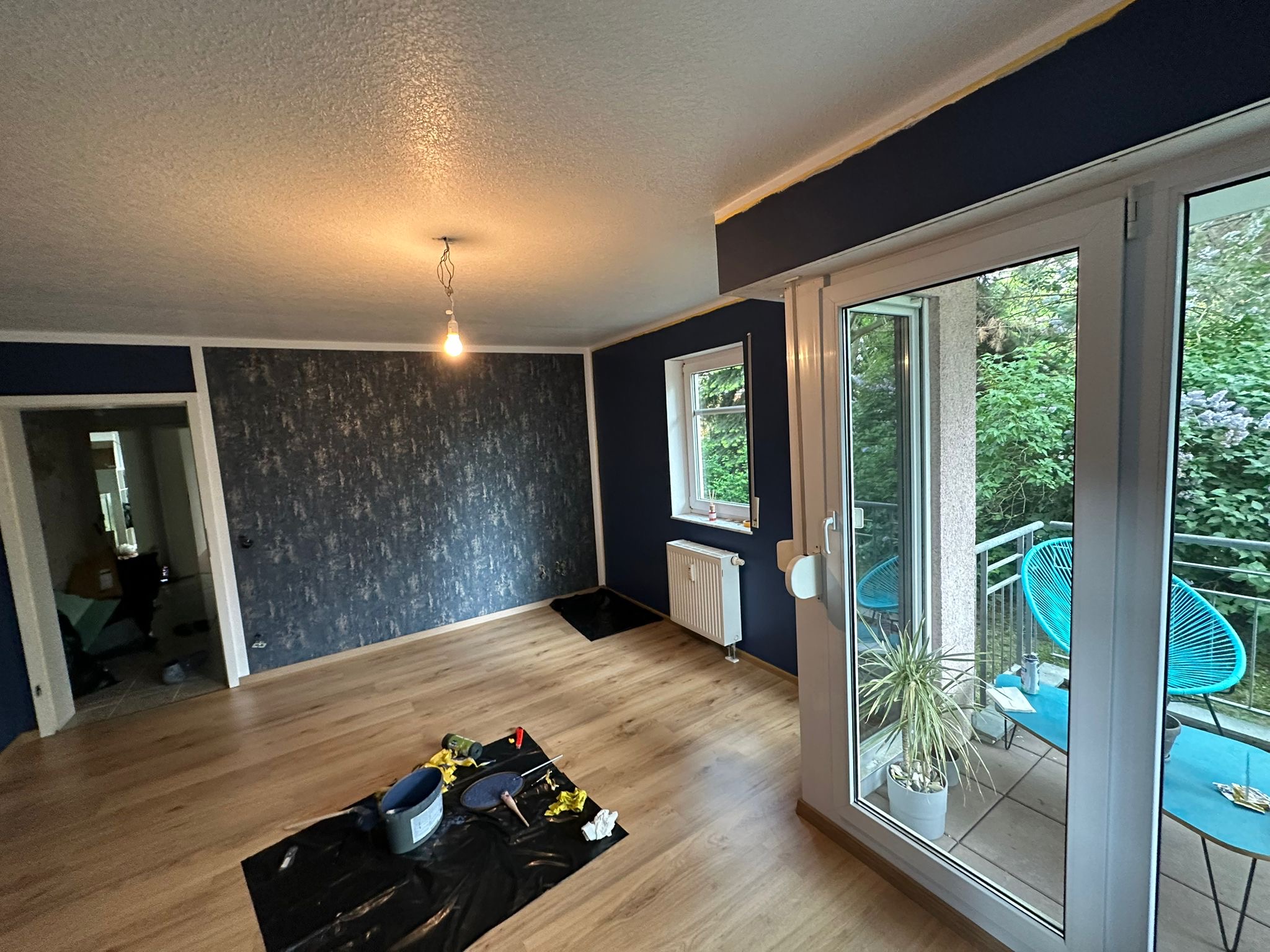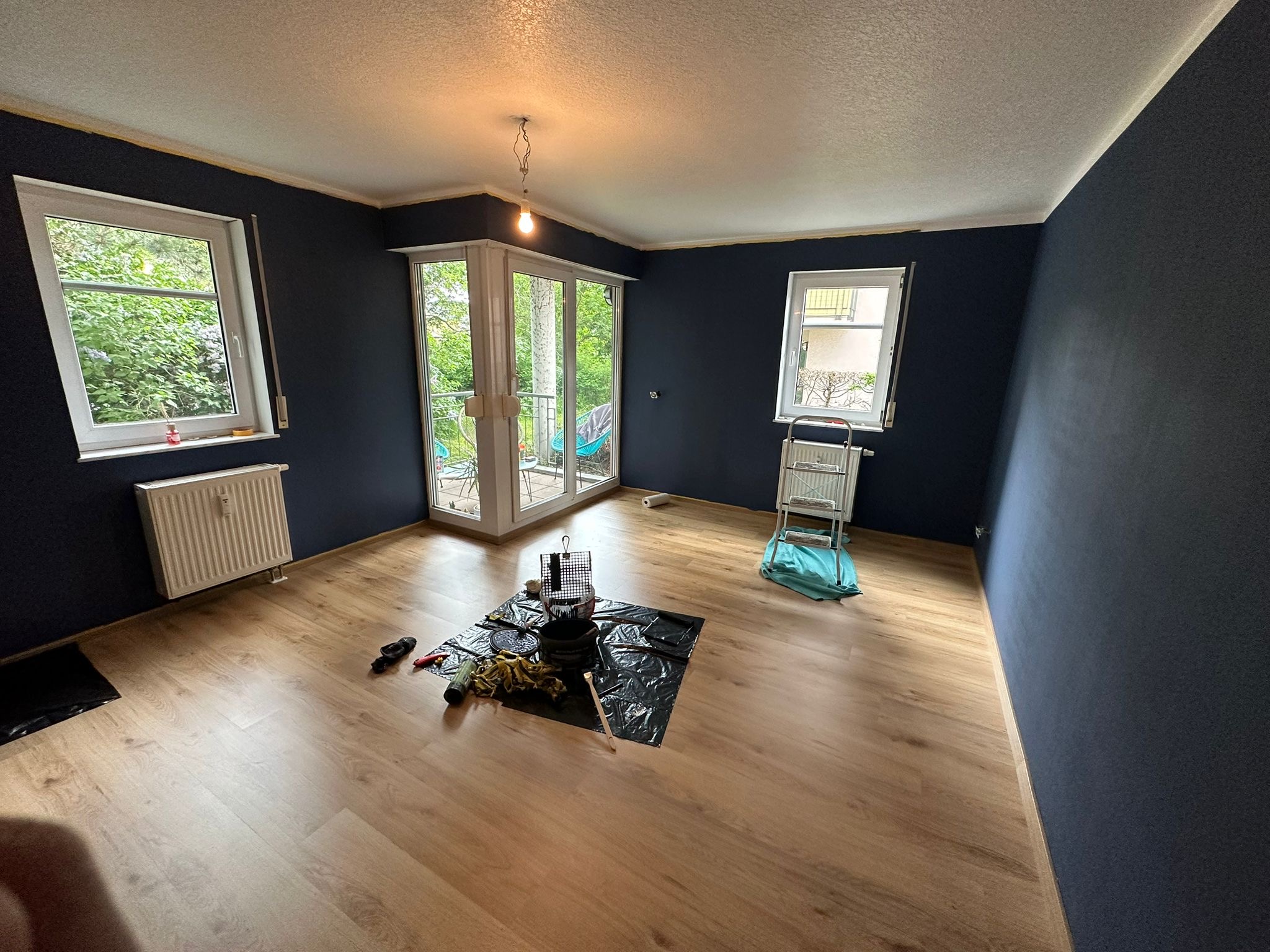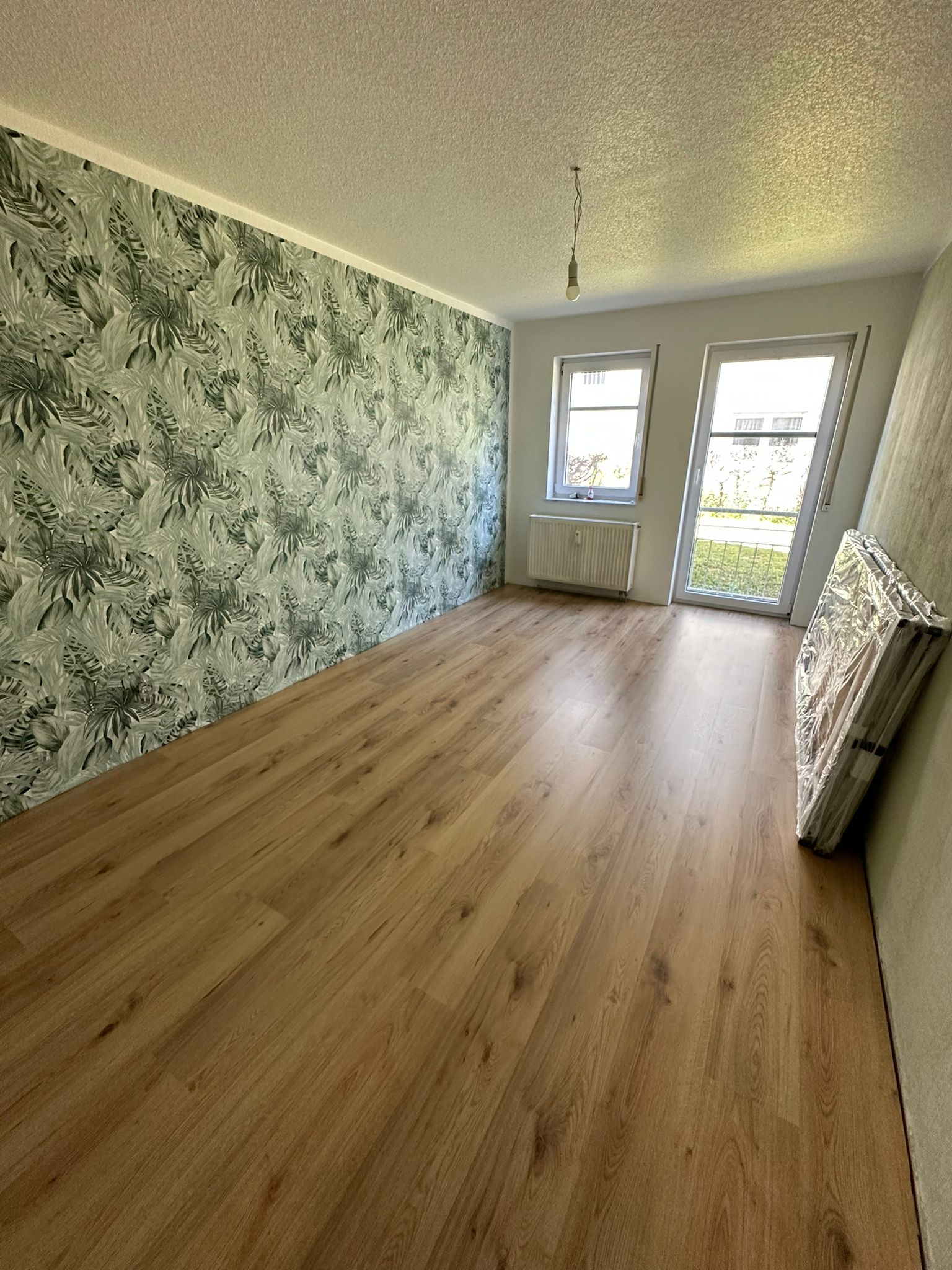 In den Wohnräumen wurde Laminat verlegt, Küche, Bad und Flur sind gefliest. Die Fenster sind mit Außenrollos ausgestattet. Die beiden Balkone gehen nicht zur Straße.