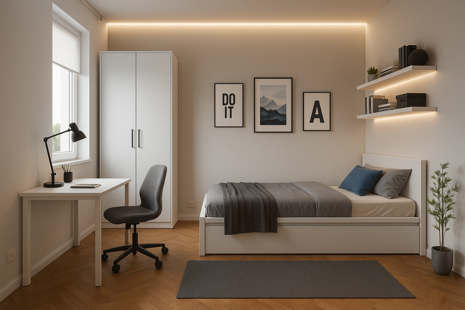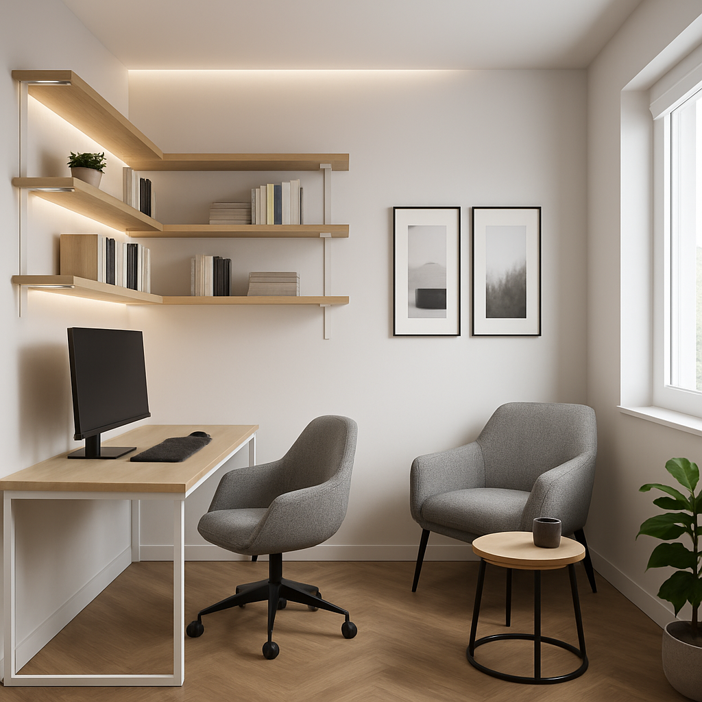 Im Erdgeschoss erwartet Sie ein vielfältig nutzbares Arbeits- oder Gästezimmer, eine offene & großzügige Wohnküche mit direktem Zugang zur Terrasse, ideal für entspannte Abende.