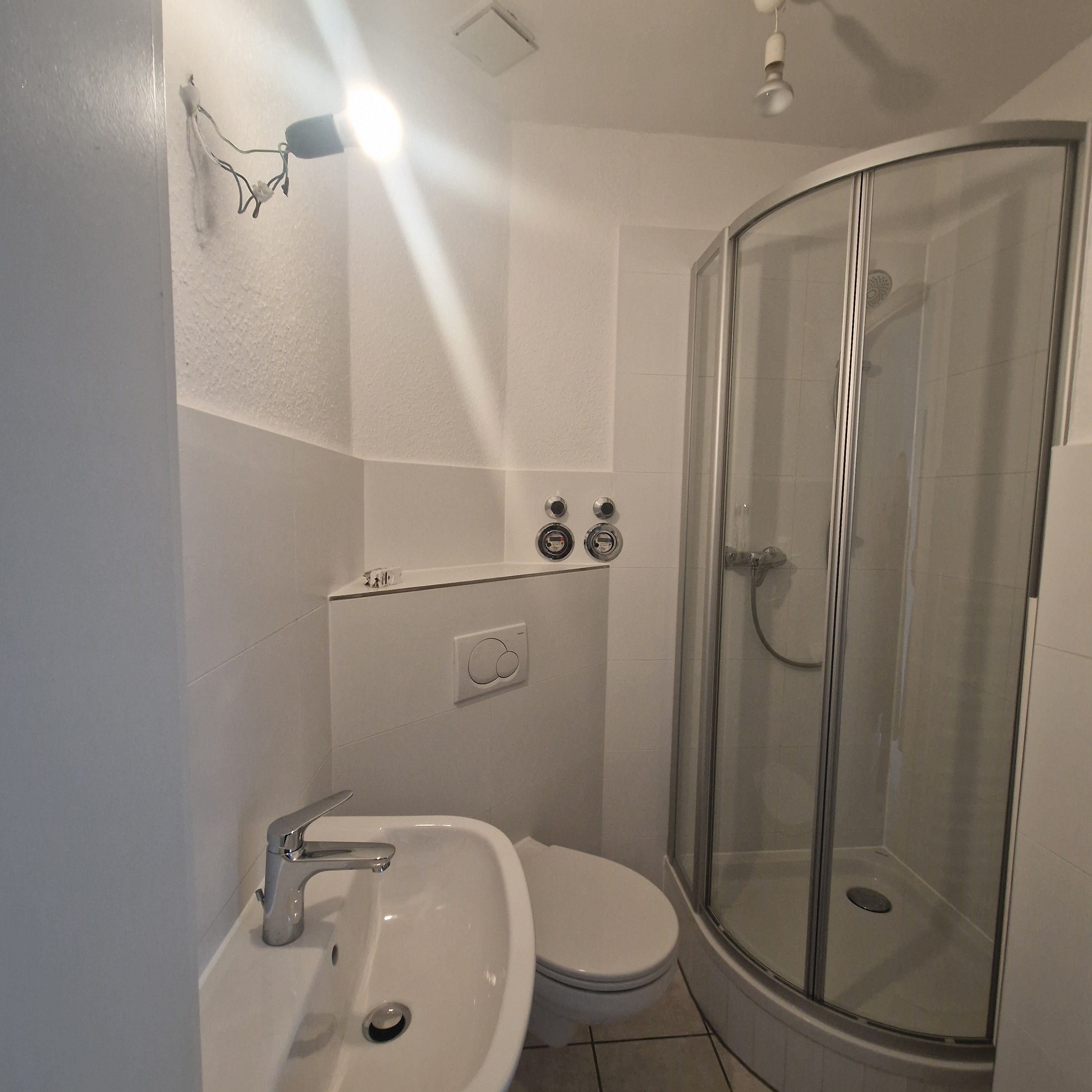 Die Wohnung liegt im 1. Obergeschoss und ist aufgeteilt in ein großzügiges Wohnzimmer mit Zugang zum Schlafzimmer und der Küche. Das Bad verfügt über eine Dusche. Die Wohnung ist komplett neu renoviert. Die Zimmer verfügten über hellen Laminatboden, Küche und Bad sind gefliest.